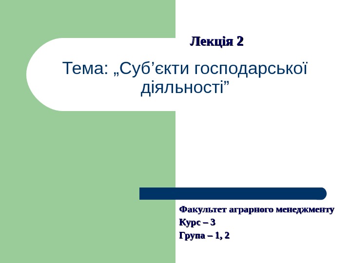 Тема: „Суб’єкти господарської діяльності” Лекція 2 Факультет аграрного