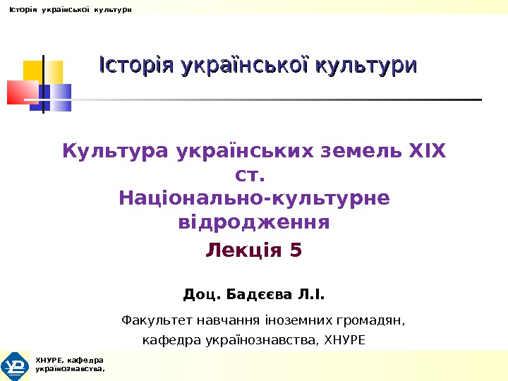 Історія української культури Культура українських земель XIX ст.