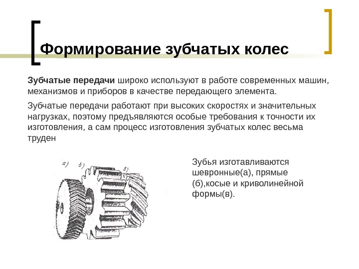 Формирование зубчатых колес Зубчатые передачи широко используют в