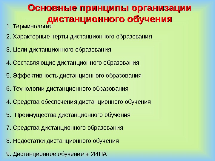 Основные принципы организации дистанционного обучения 1. Терминология