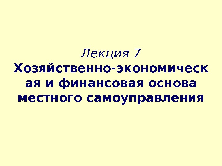 Лекция 7 Хозяйственно-экономическ ая и финансовая основа местного
