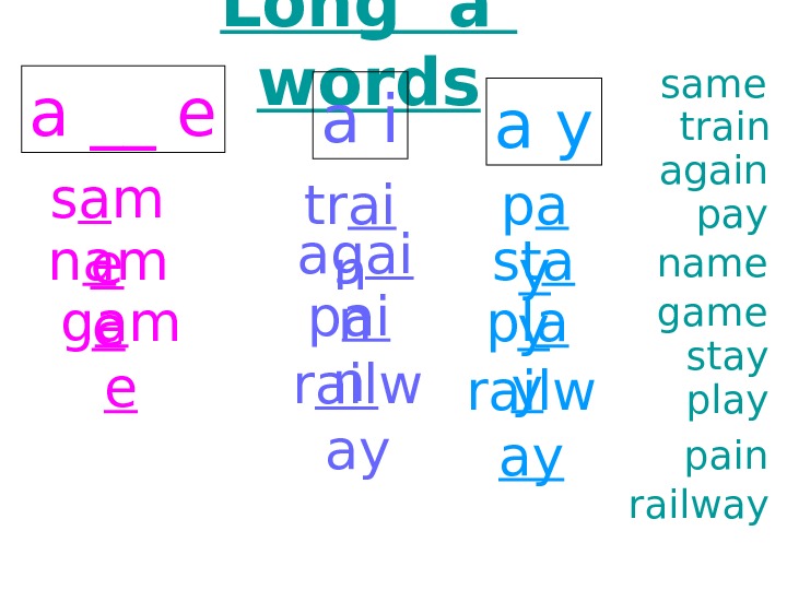 Long ‘a’ words same game train again painname