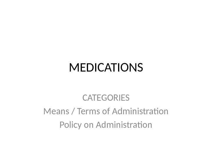 MEDICATIONS CATEGORIES Means / Terms of Administration Policy