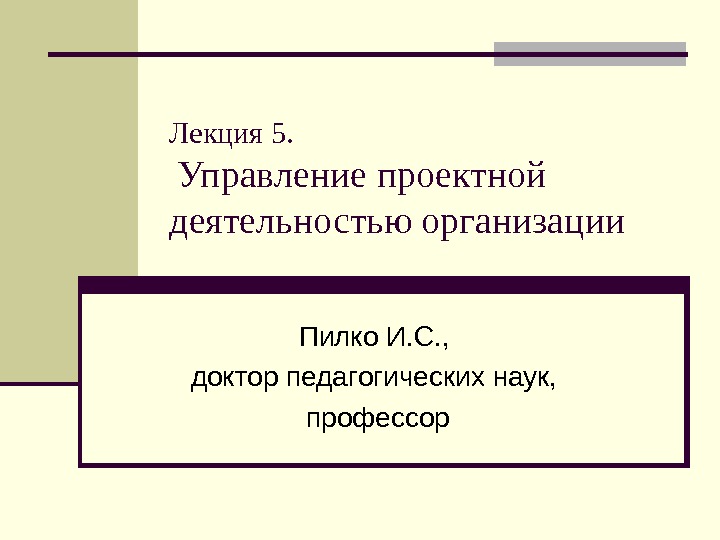 Лекция 5. Управление проектной деятельностью организации Пилко