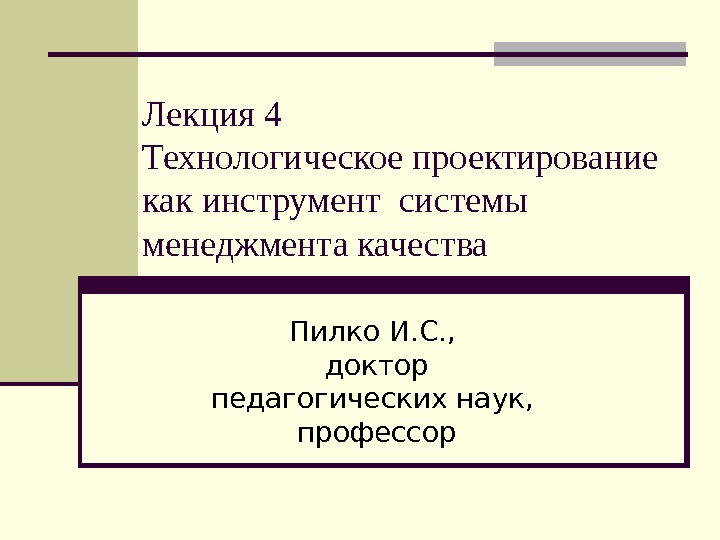 Лекция 4 Технологическое проектирование как инструмент системы менеджмента
