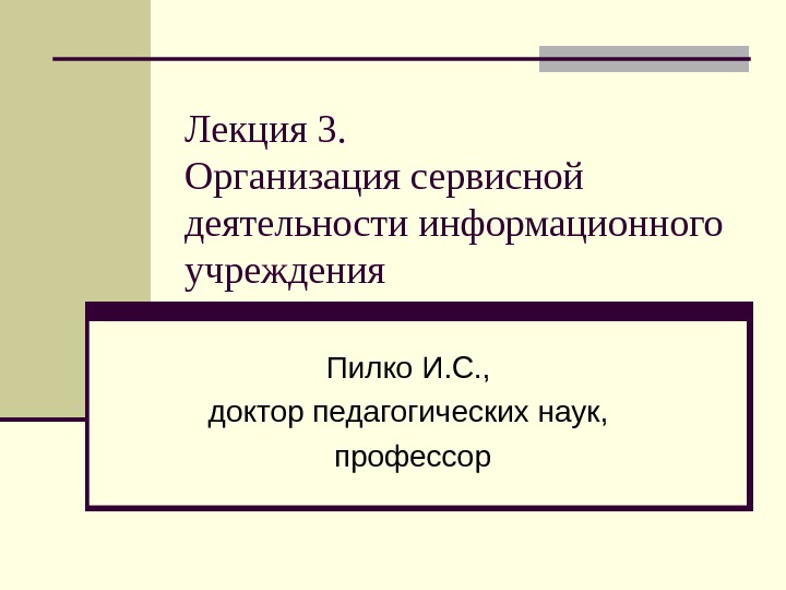 Лекция 3. Организация сервисной деятельности информационного учреждения Пилко