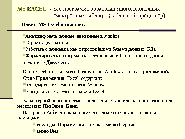 MS EXCEL — это программа обработки