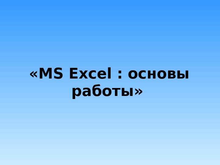 «MS Excel : основы работы» Основы