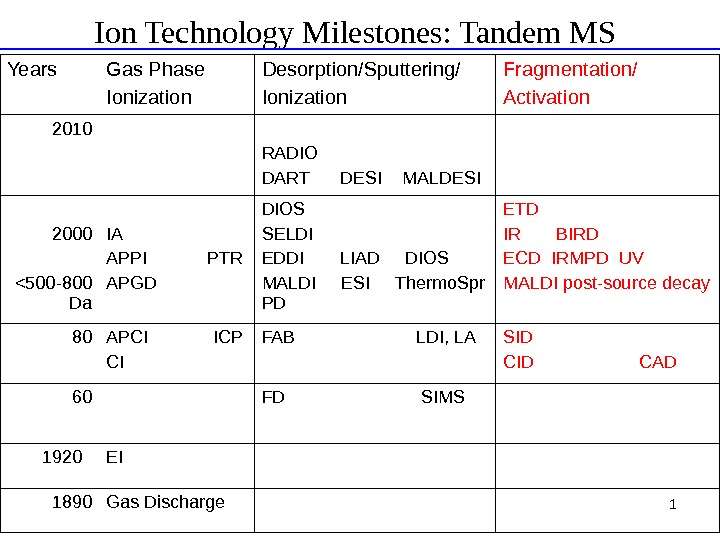 1 Ion Technology Milestones: Tandem MS Years Gas