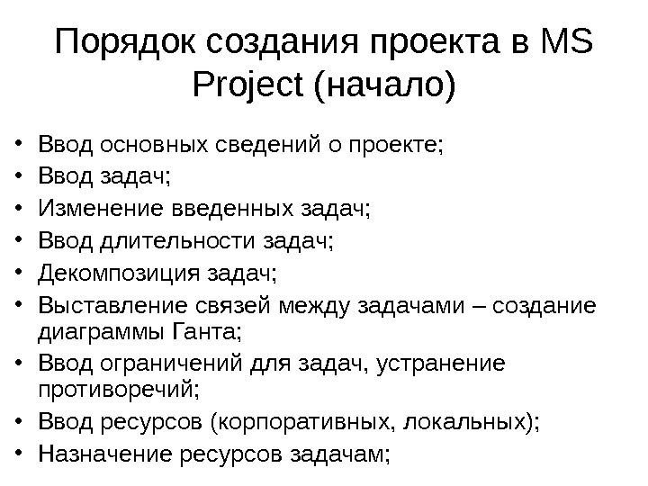 Порядок создания проекта в MS Project (начало)