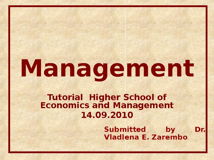 Management Tutorial Higher School of Economics and Management
