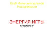Клуб Интеллектуальной Находчивости ЭНЕРГИЯ ИГРЫ представляет Клуб Интеллектуальной