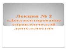 Лекция № 2 «Документирование управленческой деятельности» Классификация документов