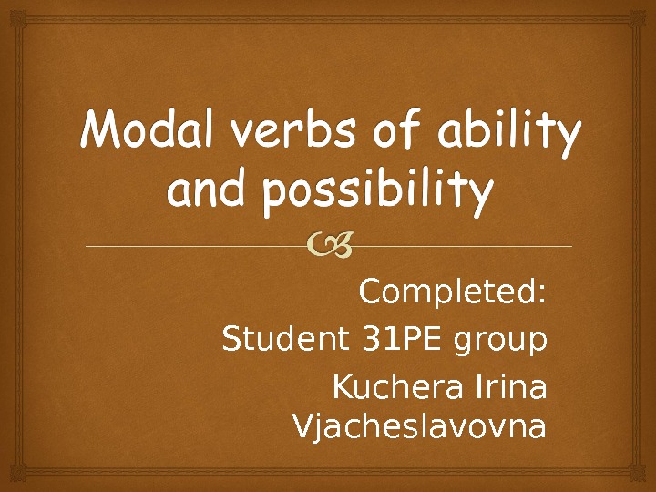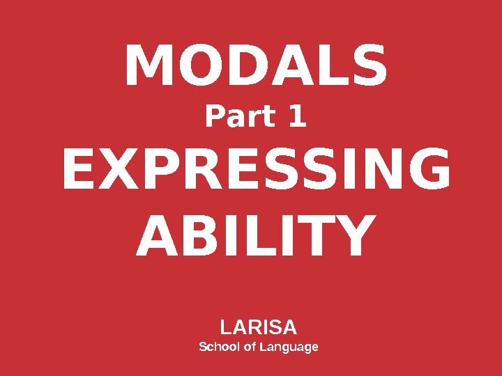 MODALS Part 1 EXPRESSING ABILITY LARISA School of