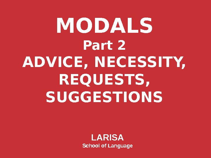 MODALS Part 2 ADVICE, NECESSITY, REQUESTS, SUGGESTIONS LARISA