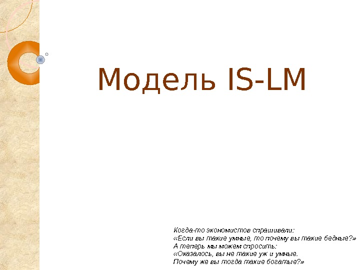 Модель IS-LM Когда-то экономистов спрашивали: «Если вы