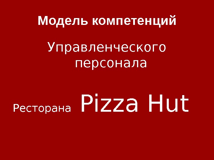 Модель компетенций Управленческого персонала Ресторана Pizza Hut