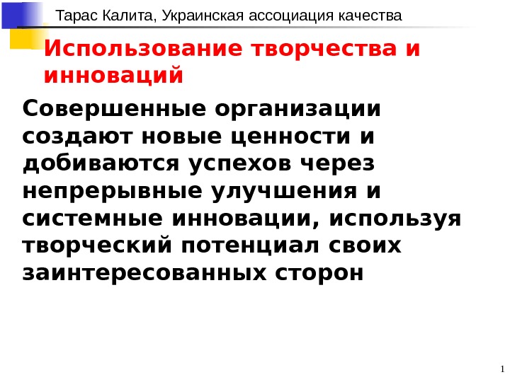 Тарас Калита, Украинская ассоциация качества 1 Использование творчества