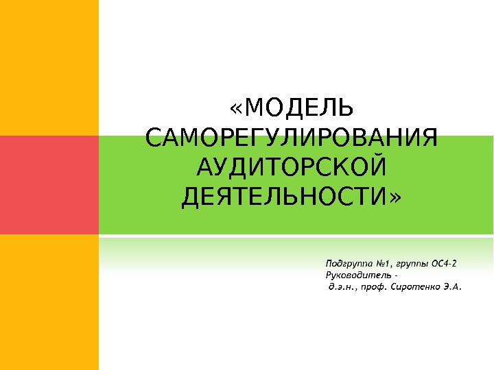 «МОДЕЛЬ САМОРЕГУЛИРОВАНИЯ АУДИТОРСКОЙ ДЕЯТЕЛЬНОСТИ» ОБЩАЯ ХАРАКТЕРИСТИКА