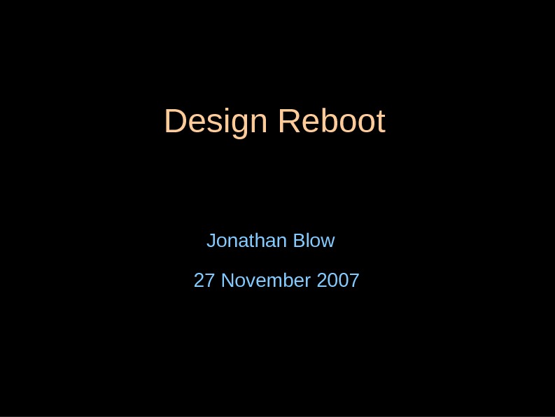 Design Reboot Jonathan Blow 27 November 2007