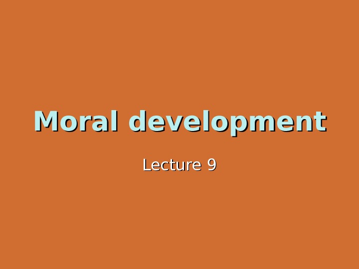 Moral development Lecture 9 Lecture outline