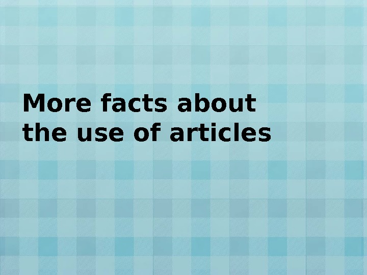 More facts about the use of articles