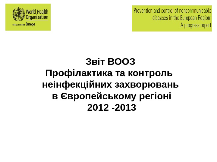 Звіт ВООЗ Профілактика та контроль неінфекційних захворювань