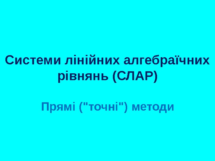 Системи лінійних алгебраїчних рівнянь (СЛАР) Прямі («точні») методи