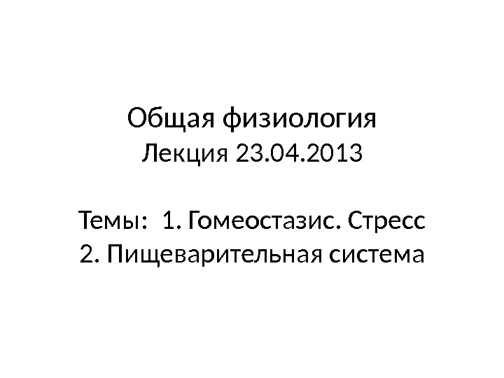 Общая физиология Лекция 23. 04. 2013 Темы: