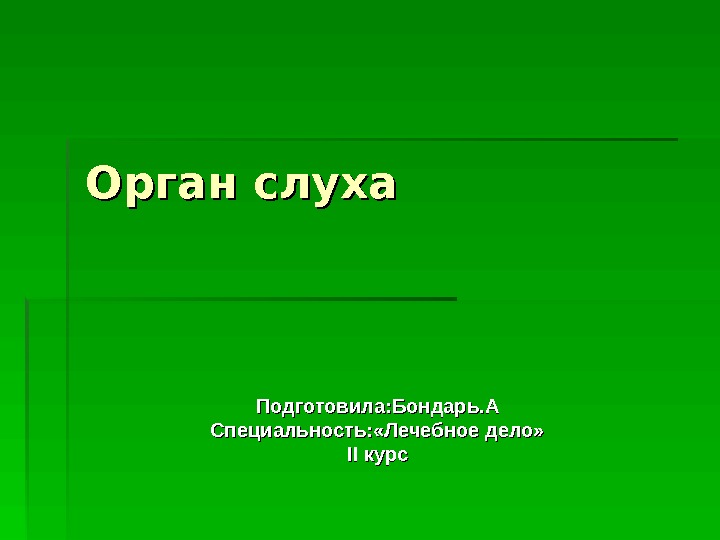 Орган слуха Подготовила: Бондарь. А Специальность: «Лечебное дело»