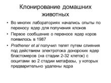 Клонирование домашних животных Во многих лабораториях начались опыты