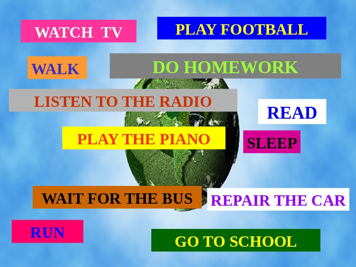 WATCH TV WALK PLAY FOOT BALL LISTEN TO