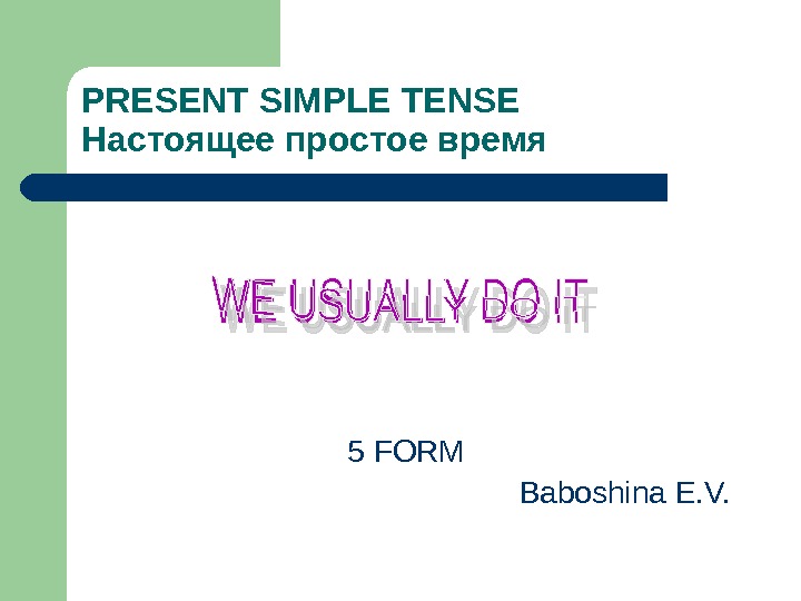 PRESENT SIMPLE TENSE Настоящее простое время 5 FORM