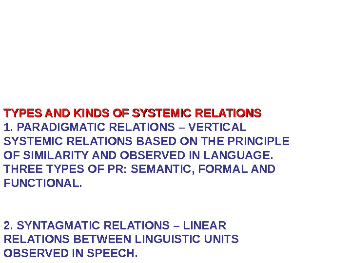 TYPES AND KINDS OF SYSTEMIC RELATIONS 1. PARADIGMATIC