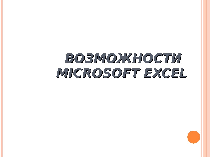 ВОЗМОЖНОСТИ MICROSOFT EXCEL ВОЗМОЖНОСТИ MS EXCEL Основные