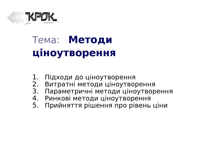 Тема: Методи ціноутворення 1. Підходи до ціноутворення 2.