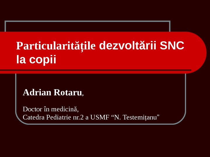 Particularităţile dezvoltării SNC la copii Adrian Rotaru ,