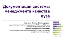 Документация системы менеджмента качества вуза Тимченко Виктор Владимирович