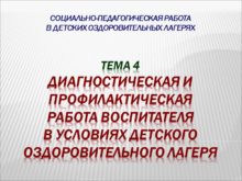 ТЕМА 4 Диагностическая и профилактическая работа воспитателя в