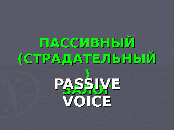ПАССИВНЫЙ (СТРАДАТЕЛЬНЫЙ )) ЗАЛОГPASSIVE VOICE ДЕЙСТВИТЕЛЬНЫЙ ЗАЛОГ