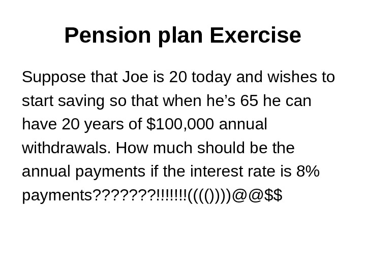 Pension plan Exercise Suppose that Joe is 20