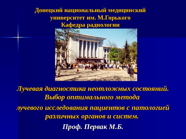 Донецкий национальный медицинский университет им. М. Горького Кафедра
