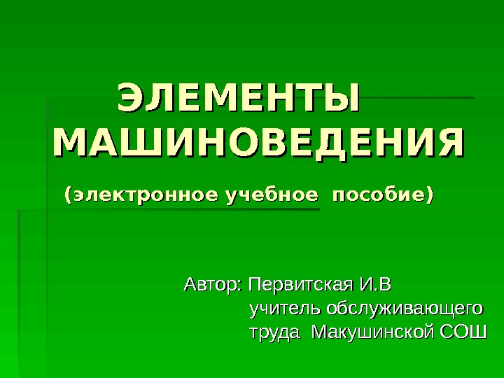ЭЛЕМЕНТЫ МАШИНОВЕДЕНИЯ (электронное учебное пособие)