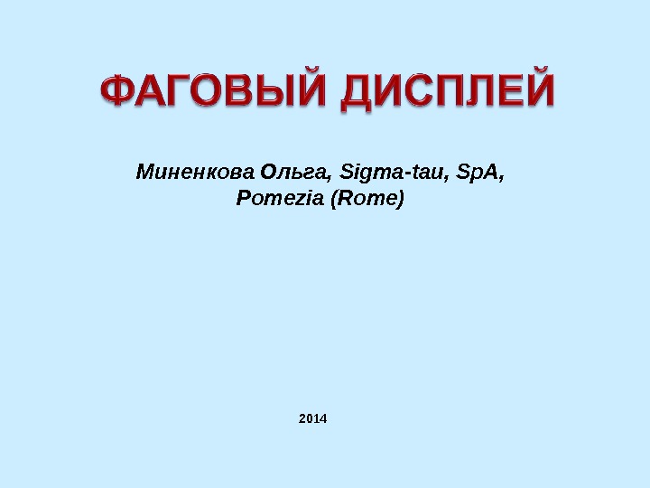 Миненкова Ольга , Sigma-tau, Sp. A, Pomezia (Rome)