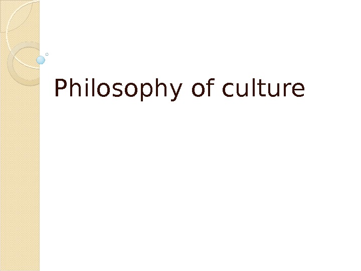 Philosophy of culture The word “culture” comes