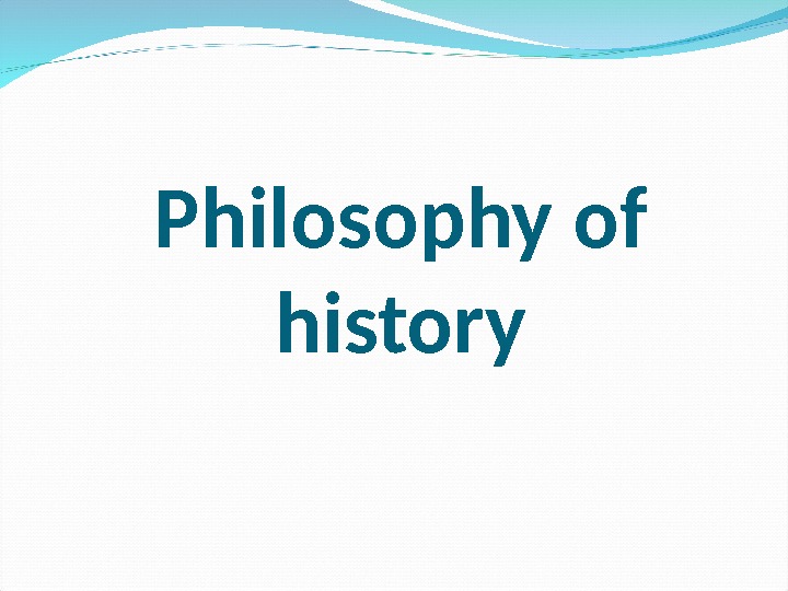 Philosophy of history 1. History as
