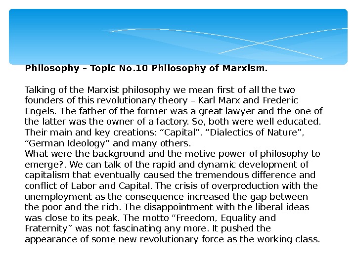 Philosophy – Topic No. 10 Philosophy of Marxism.