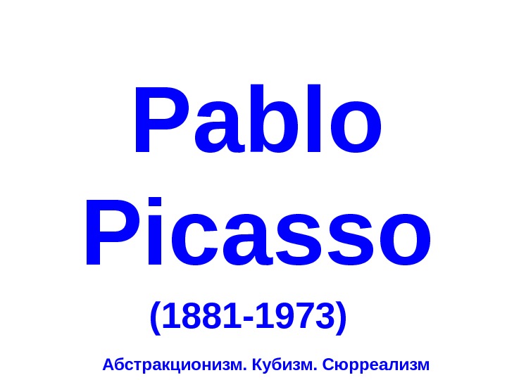 Pablo Picasso (1881 -1973) Абстракционизм. Кубизм. Сюрреализм