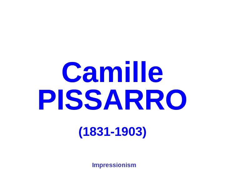 C amille PISSARRO (1831 -1903) Impressionism L’