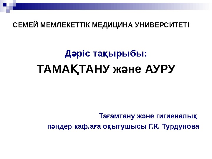 СЕМЕЙ МЕМЛЕКЕТТІК МЕДИЦИНА УНИВЕРСИТЕТІ Д ріс та ырыбы: